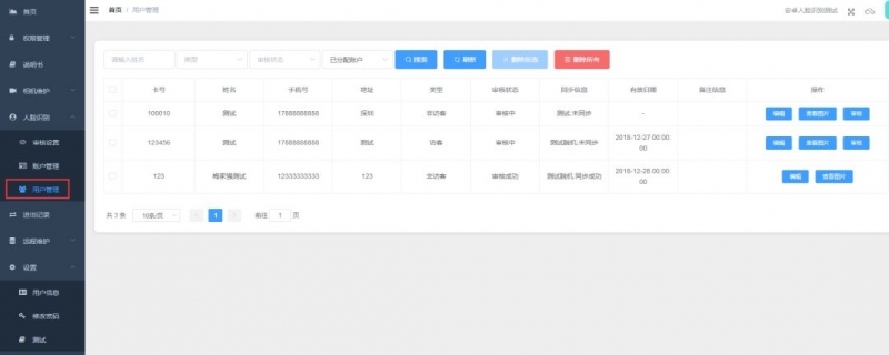添加完成后,如果未審核,需要物業管理人員審核才有效,審核完成后等待同步成功則相機就會識別通過